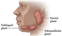 Glândulas salivares- Localizam-se na cabeça e existem três pares: as parótidas que se localizam perto dos ouvidos, as sub-linguais que se localizam por baixo da língua na parte anterior e as sub-maxilares que se localizam debaixo do maxilar inferior na parte posterior. Segregam a saliva.